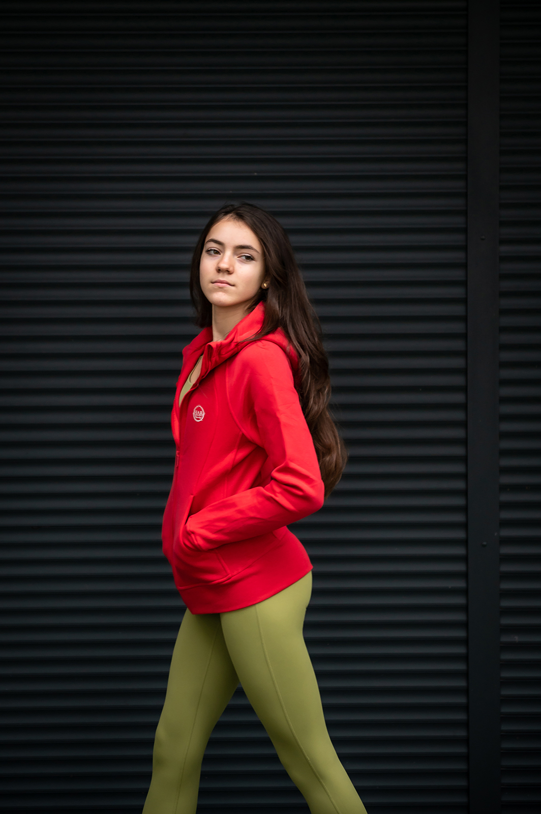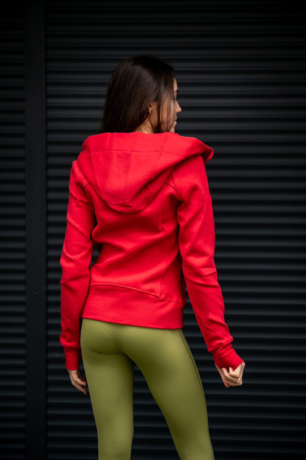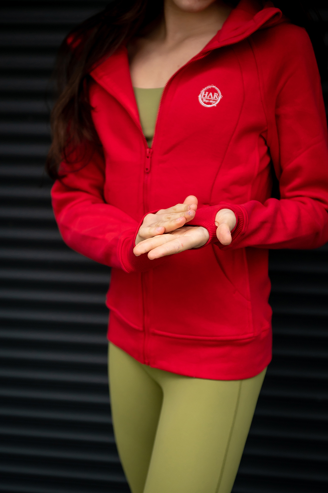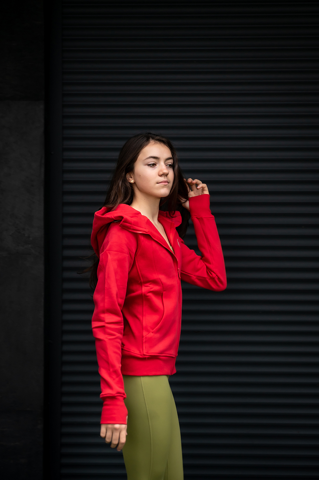 Jachetă din țesătură de bumbac de calitate soft touch, cu strat interior flaușat. Glugă reglabilă cu șiret și închidere în față cu fermoar. Buzunare laterale, talie elastică și mâneci cu manșete, având o deschidere strategică pentru degetul mare și elemente de ajustare la mâneci.